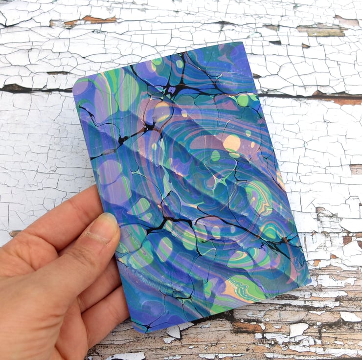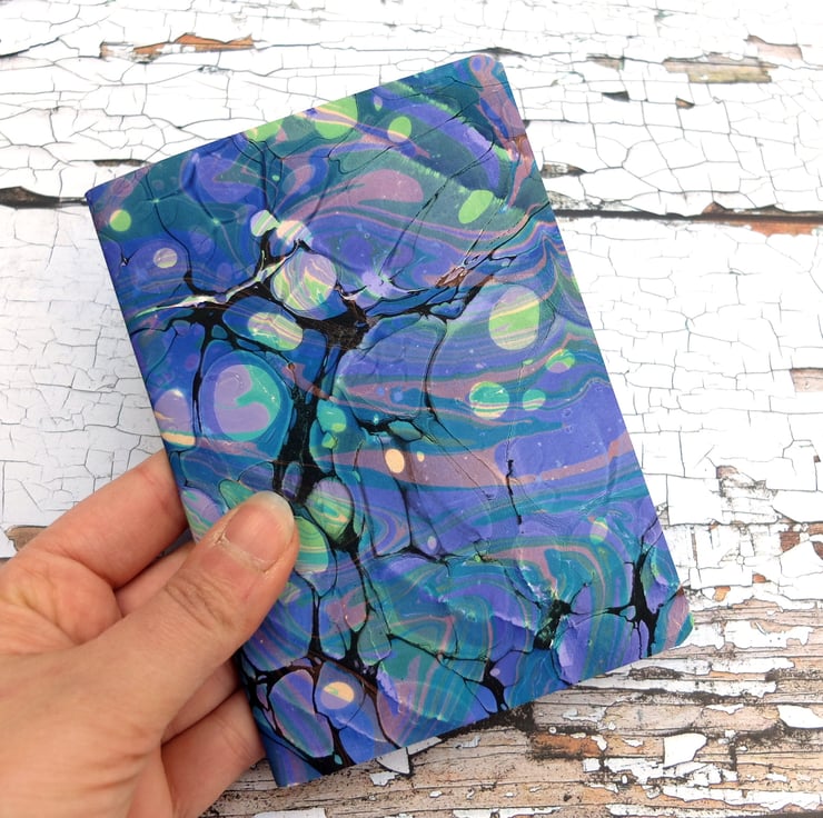 This is a colourful and fun little a6 notebook covered in some of my own marbled paper.