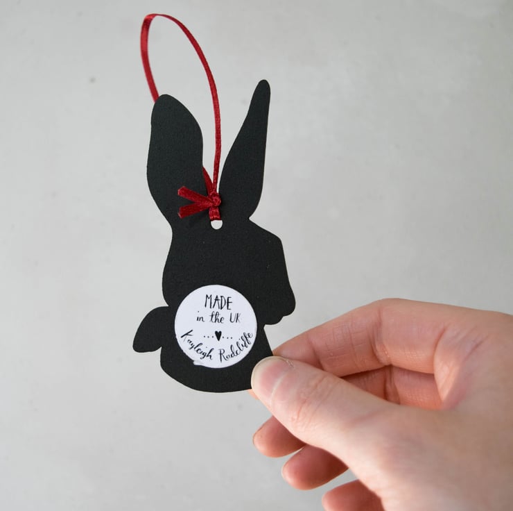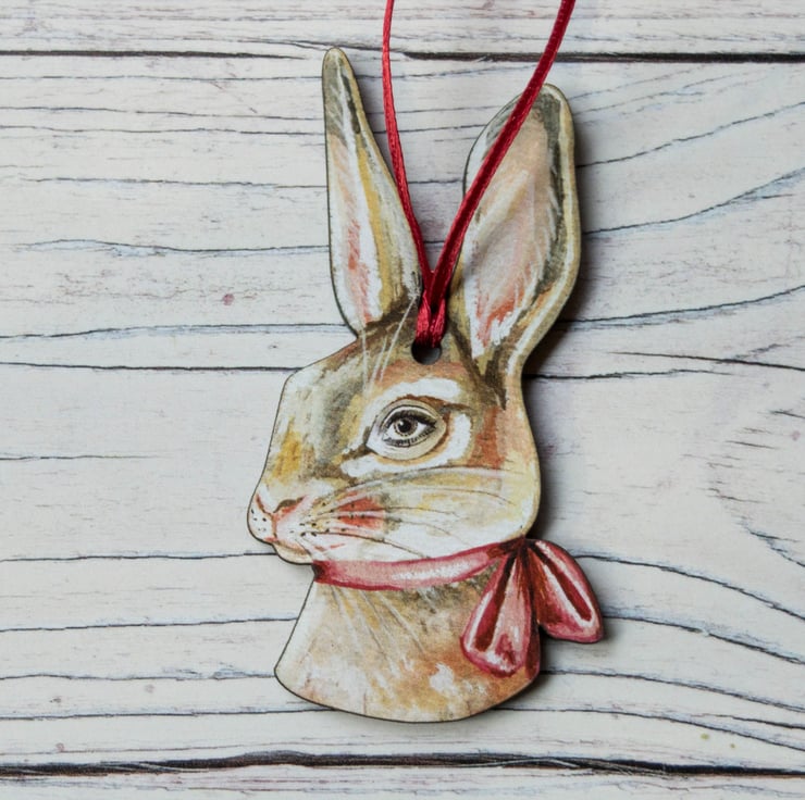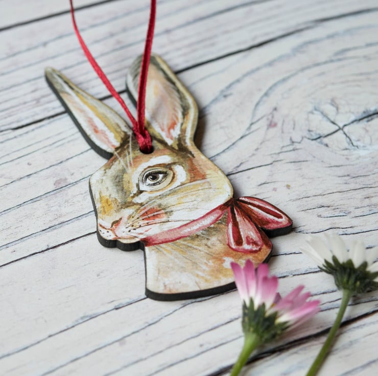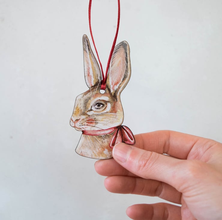 The rabbit is my own illustration and has been designed to be an all year round decoration but can also be savoured for best. Would be wonderful added to a Christmas tree! Why not hang it from your mantelpiece for all to admire or within a child's nursery.