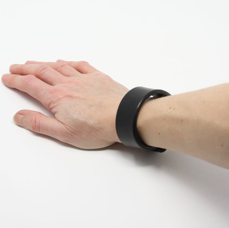 Plain black leather bracelet, 1inch wide, with rounded edges to ensure maximum comfort. The leather is lovely and supple making it a delight to wear. The wristband is fastened using a gold-coloured press-stud. It comes in a choice of lengths. Please specify the length you want when ordering.