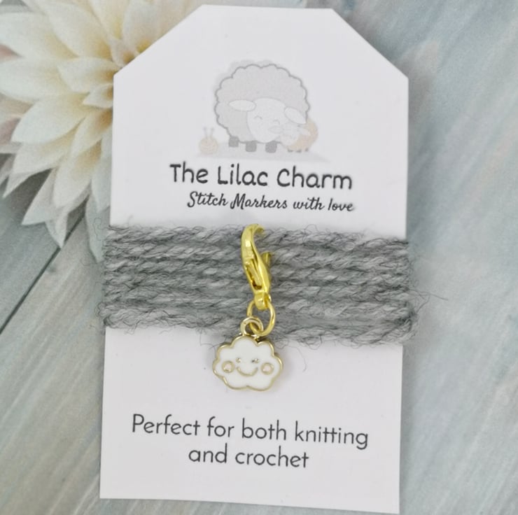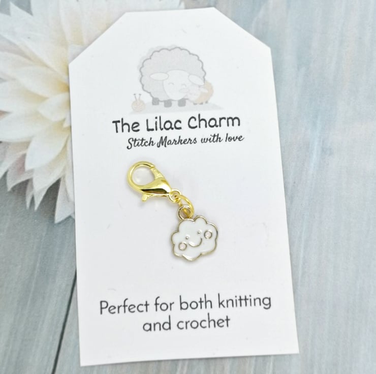 Super cute cloud face charm. Lovely to add to your favourite fibre project. Perfect for knitting and crochet.