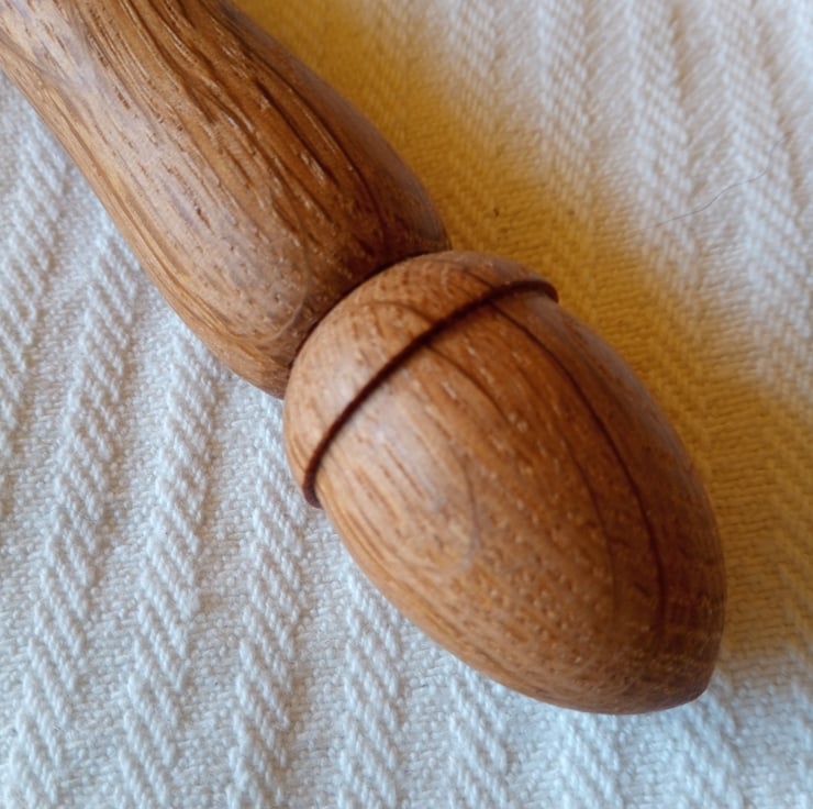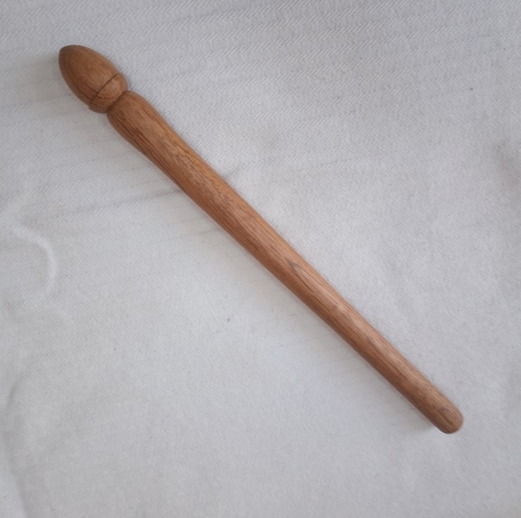 English pattern porridge stirrer. Also good for sauces, mixtures etc. Made from Oak over 120 years old which I reclaimed when we had our Victorian sashes replaced with double glazing. Has dbeautiful markings in the grain so a beautiful useful little kitchen accessory. Measures approximately 11.5inches (29cm) long. Available in Sycamore - a stunning pale blonde colour - or oak as shown here. There are slight differences in all the grain patterns due to the natural nature of wood!