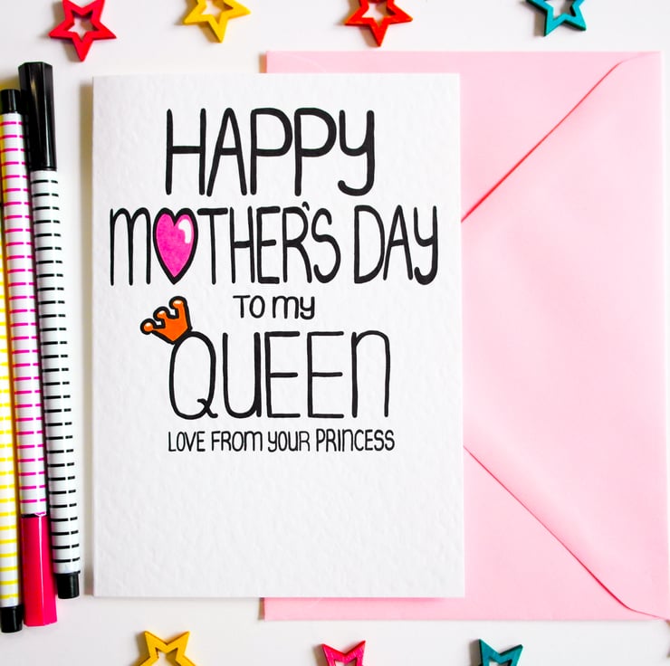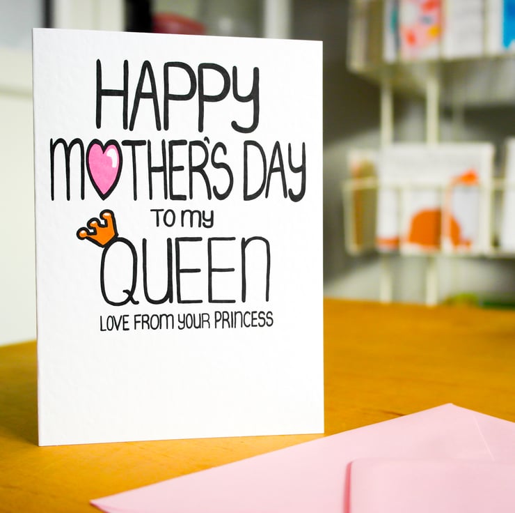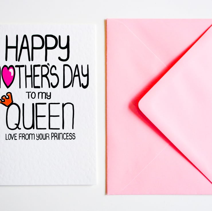 Greeting on front: HAPPY MOTHERS DAY TO MY QUEEN LOVE FROM HER PRINCESS