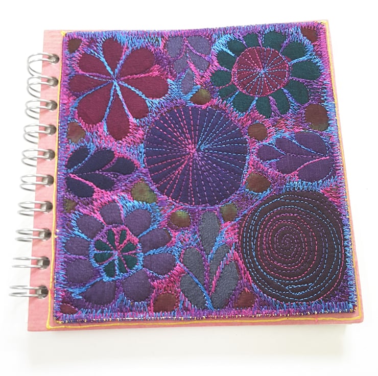 The cover is made from layers of fabric including hand dyed Egyptian cotton and silk fabrics using the free machine embroidery style of sewing