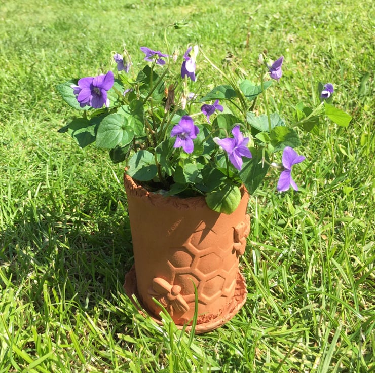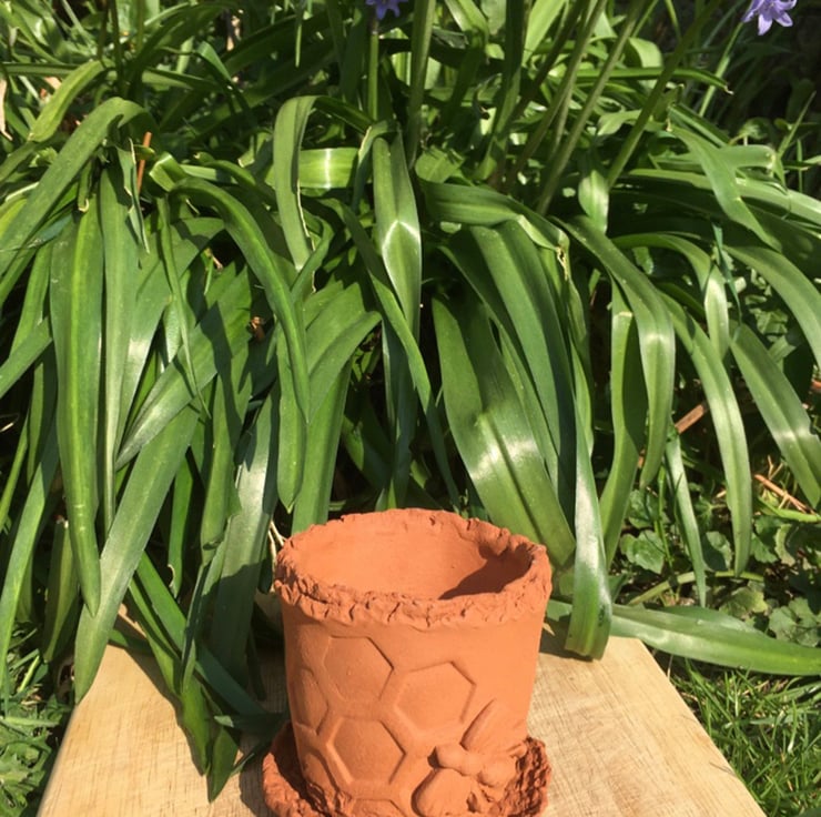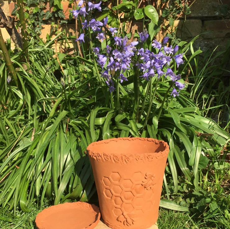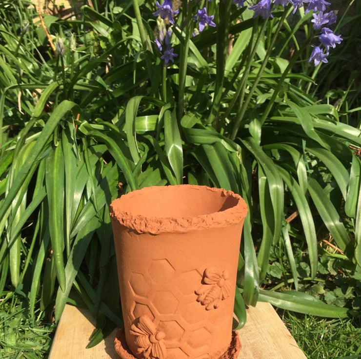 We have a lovely range of rustic terracotta plant pots with a bee hive and busy buzzy bees in the design. They're perfect for small (hopefully bee-loving) plants for patios and balconies outside. Each pot has a small dish.