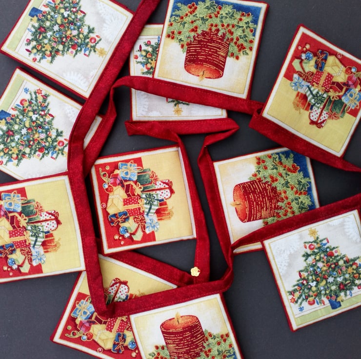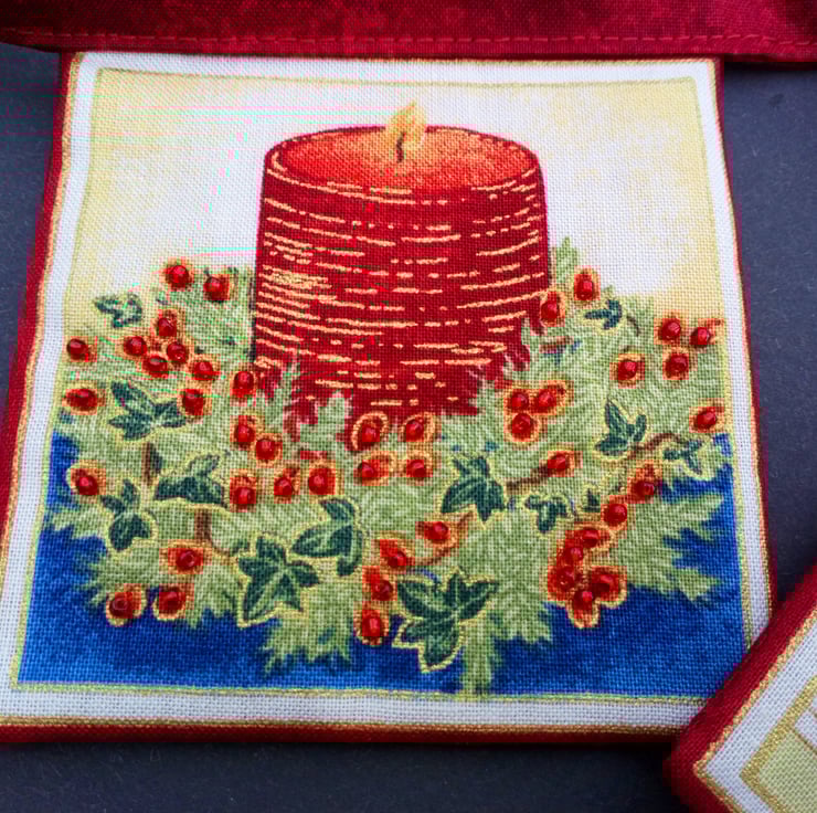 Very light in weight it will attach anywhere. The candles are beaded by hand and the last flag has a pocket for the light chain. A lovely sparkle for the festive season