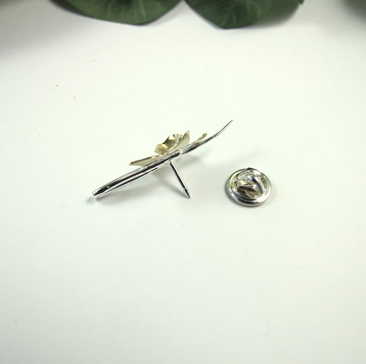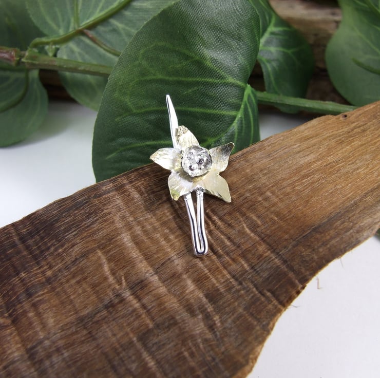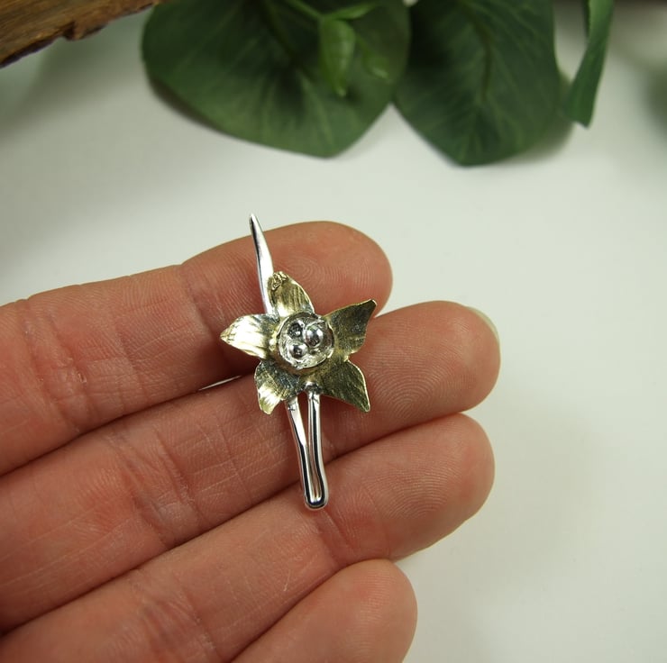 Daffodil Pin Brooch, Brass with Sterling Silver Fittings.