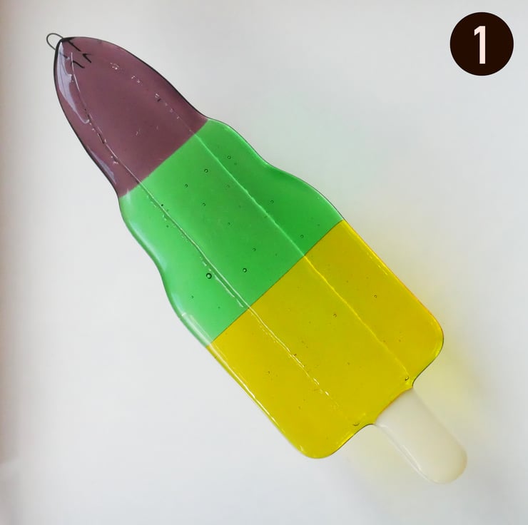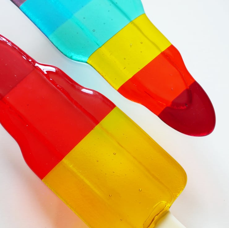 Who doesn't like zoom lollies?! I liked the idea of merging a classic design with colours I thought would work well in glass, and came up with this.
