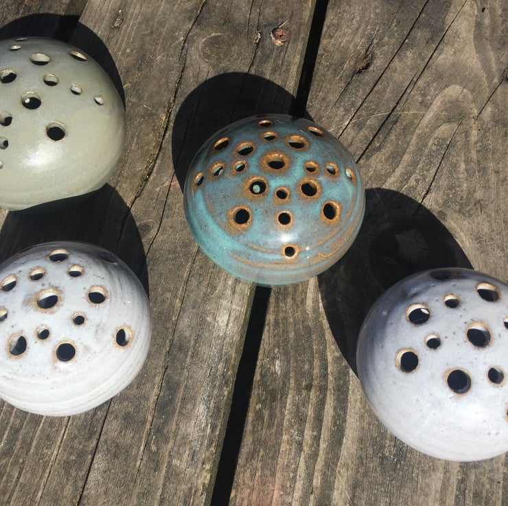 Perfect for arranging those little flowers in that just don't fit in your vase. They are made on the wheel from stoneware clay and glazed inside and out. They vary slightly in size but average 9x 6 cm.