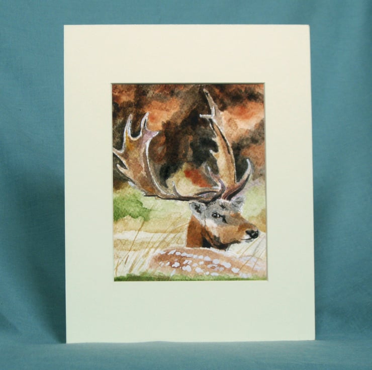 Watercolour painting. Picture dimensions 11 x 14 cm. Supplied window mounted, overall matte size 17.8 x 22.9 cm (7 x 9in). Will fit a standard sized frame.