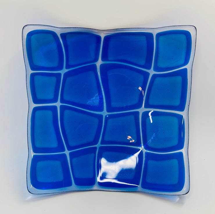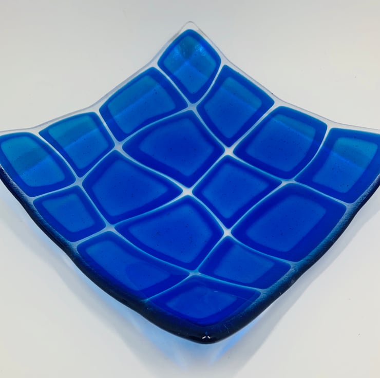 Fabulous Retro Warp Blue fused glass bowl / dish. Hand cut and crafted from sheet glass and fused in my home studio in my glass kiln.