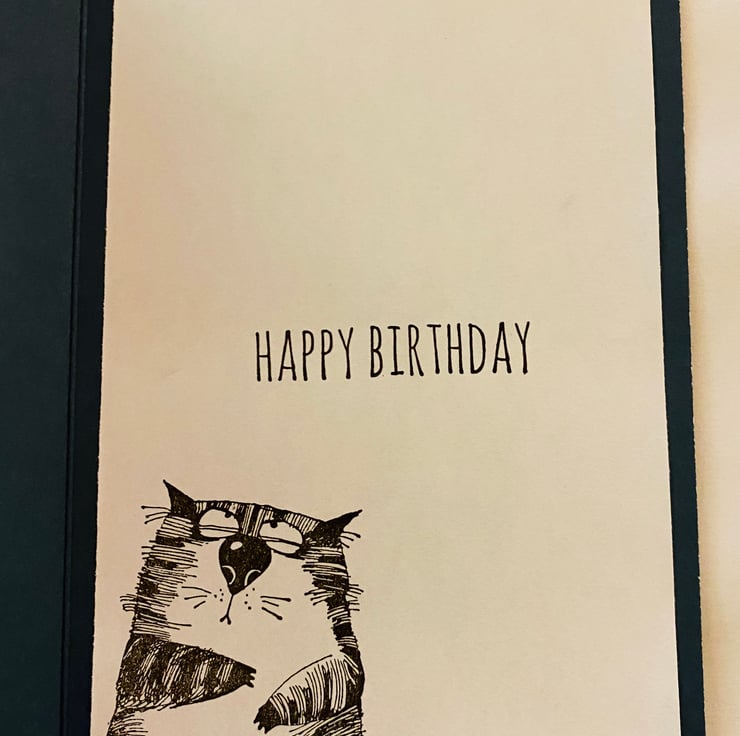 After seeing the Snarky Cat stampset on one of Tim Holtz live Facebook stories, I liked how this cat portrays a serious, but sarcastic face and thought it would be ideal for a birthday card with a difference.