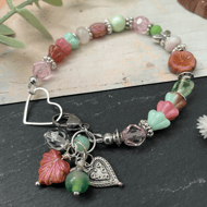 The design has been created using high quality, extremely strong S lon 0.5mm macrame thread, in soft lilac. I have threaded a selection of Japanese and Czech glass seed beads around a central lilac Fire Polished bead, giving the effect of a flower.