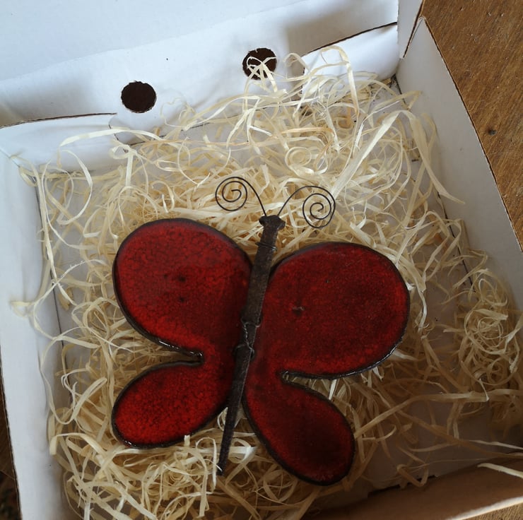 Your Butterfly will arrive in a straw lined gift box. This Butterfly is about 12cm wide.