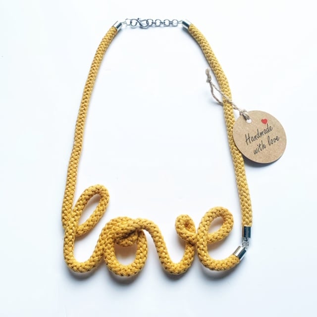 A beautiful handmade necklace. It is made using soft cotton rope. It’s around 70cm in length. Can be made longer. It has lockable clasps to give a beautiful finish.