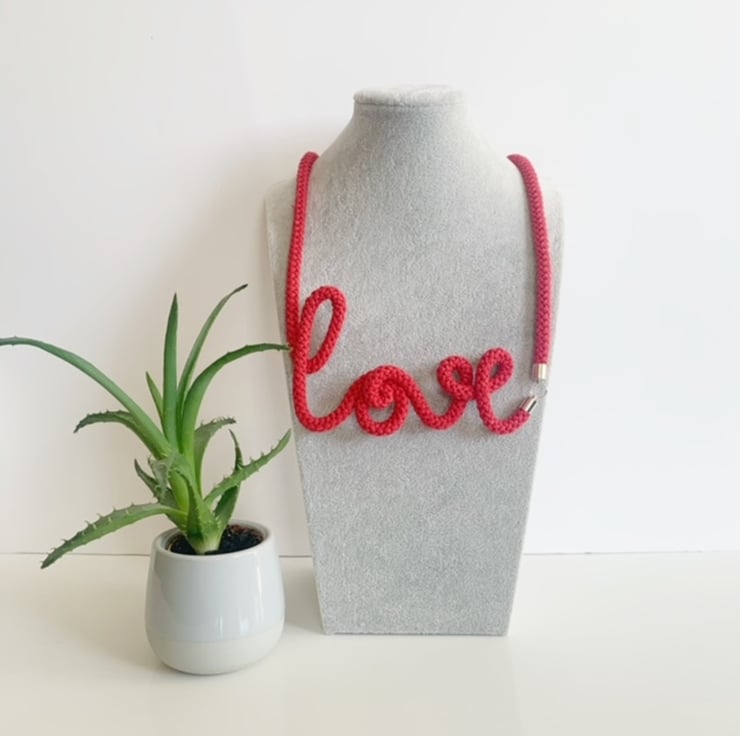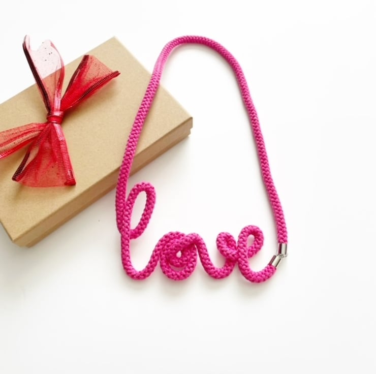 'Love' - I have written this word with cotton rope and looks fabulous in red, pink and orange.