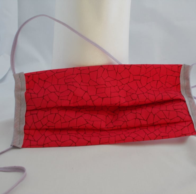 This is a washable double fabric face covering with interior pocket if required It is made from 100% cotton and comes with pre threaded cotton ties or elastic ties for you to adjust to size, please make your choice in the selection option.