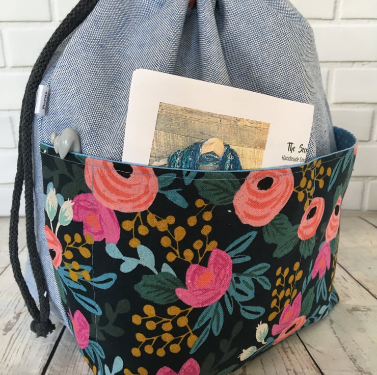 Large drawstring project bag for crochet, knitting or anything else you might like to put in there!