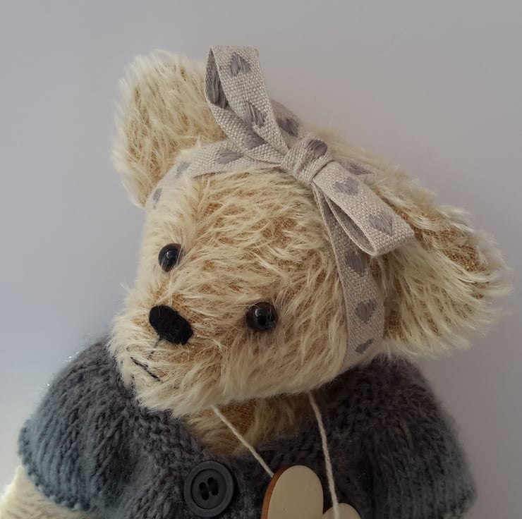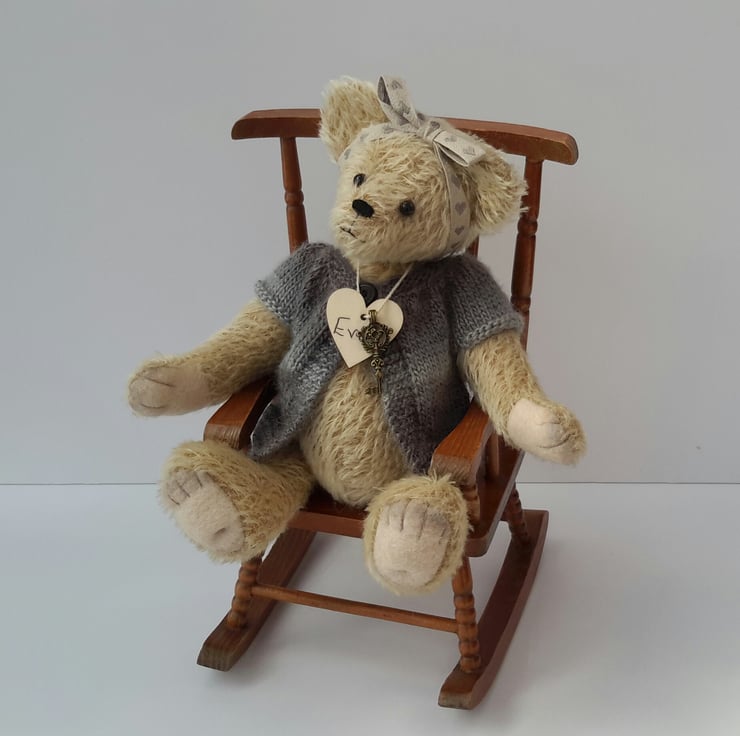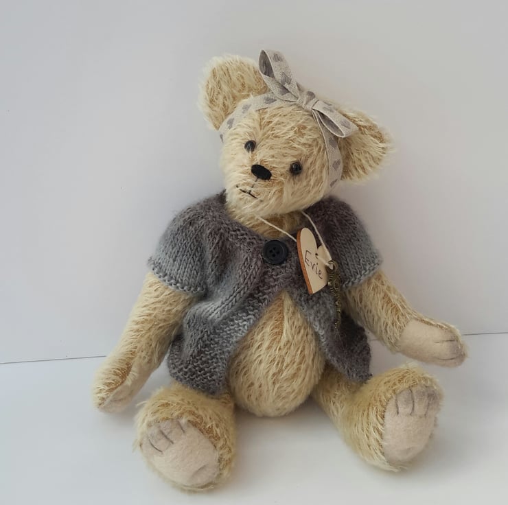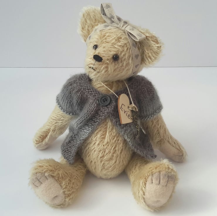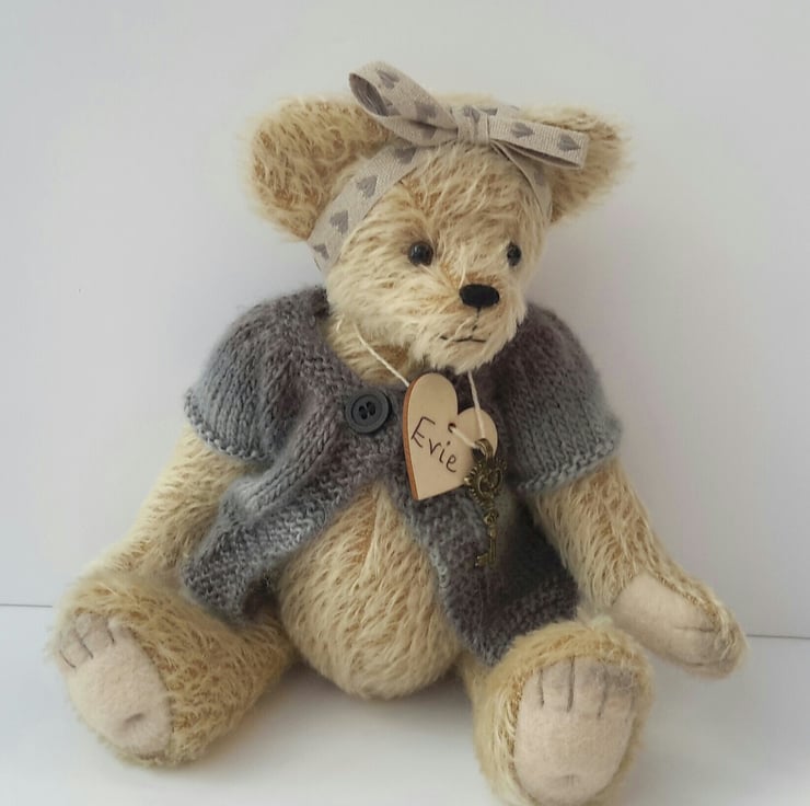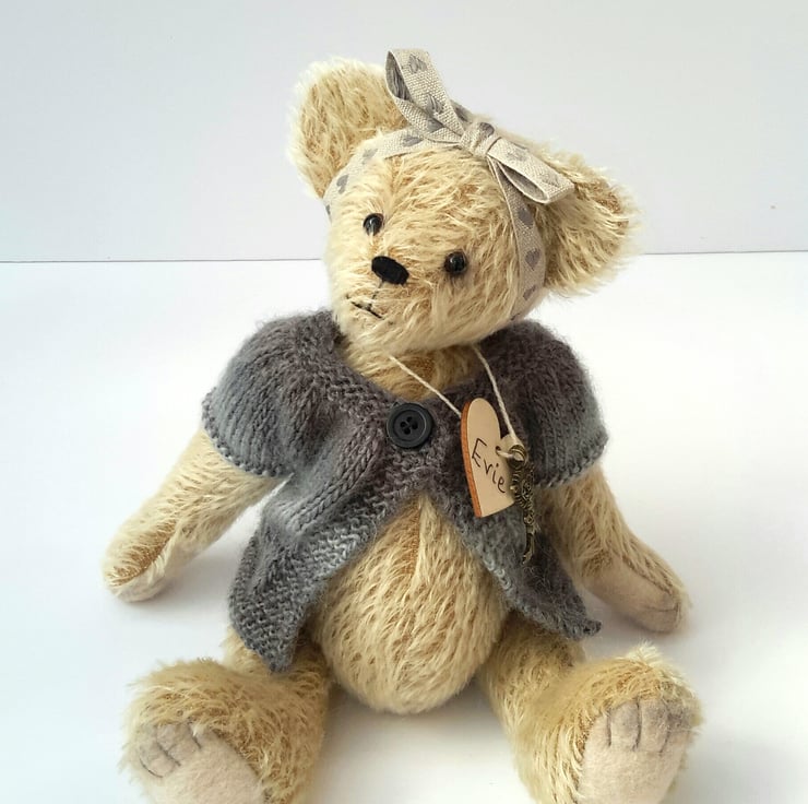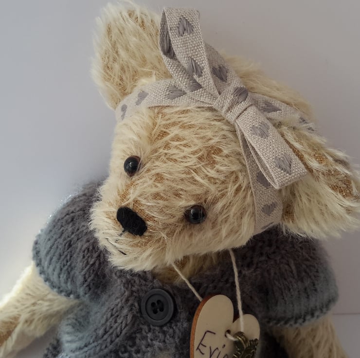 Meet Evie, a One of a kind collectable artist bear, designed and created by Bearlescent. Dressed mohair Bear.