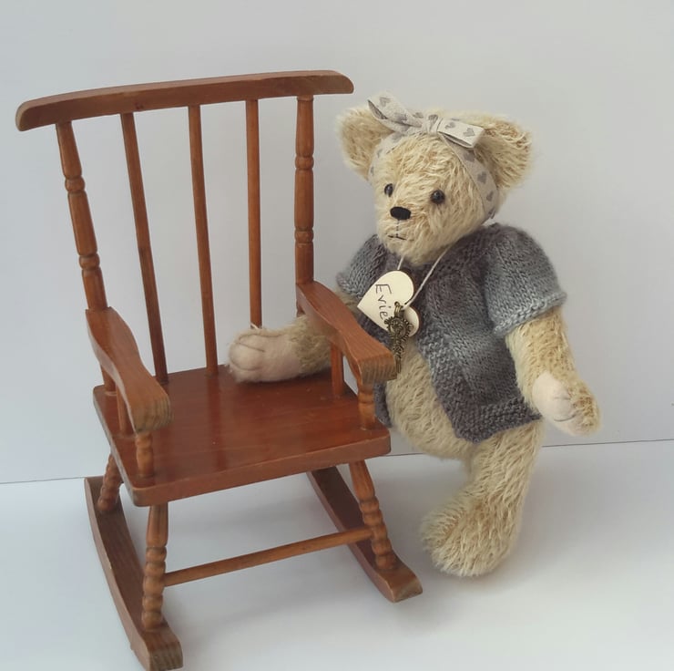 Evie has a shy disposition and is a traditionally styled bear. She would make a lovely keepsake gift or an addition to a collection.