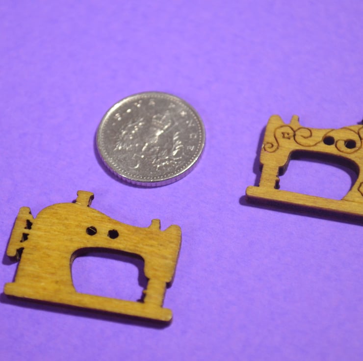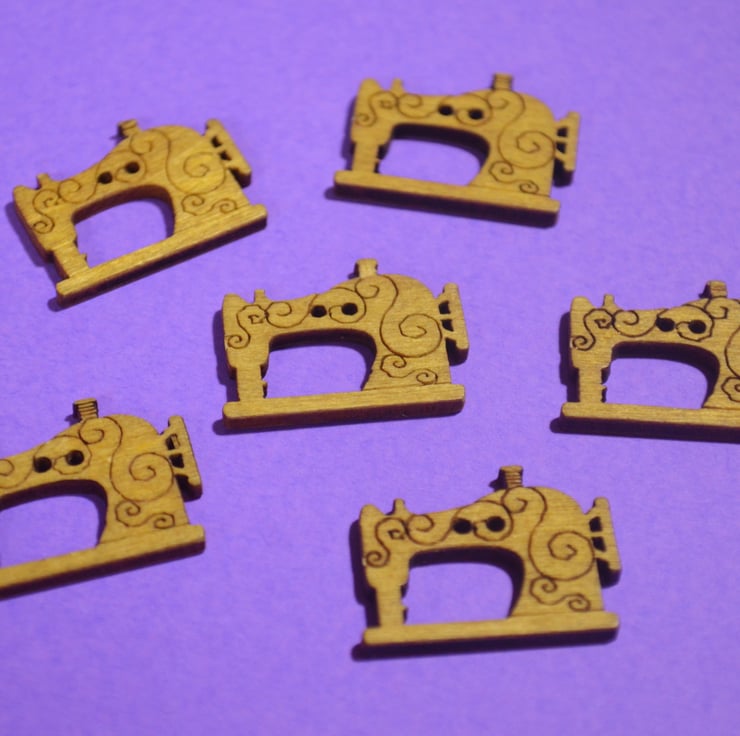 Wooden Sewing Machine Buttons Yellow 6pk Seamstress 26x20mm (S8)