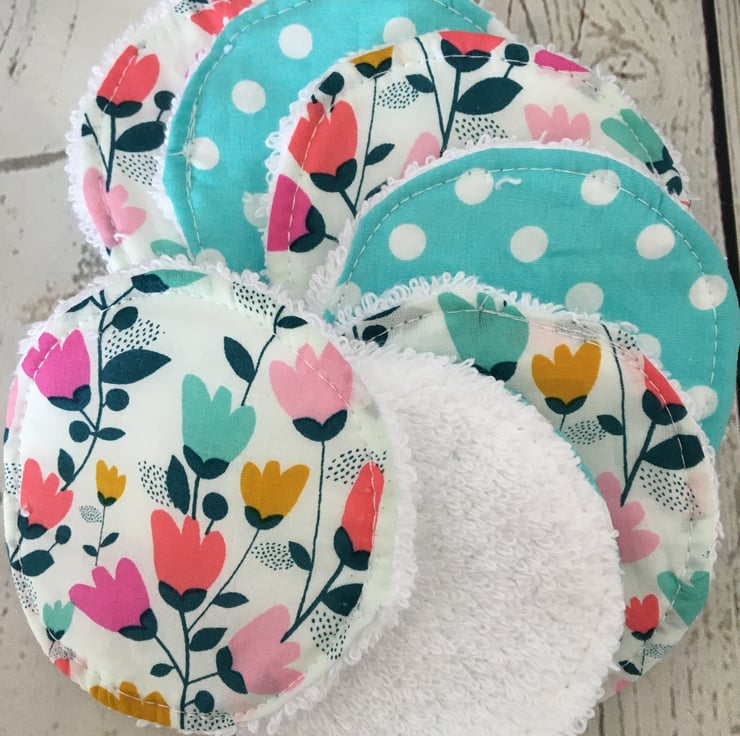 Reusable make up pads, made from 100% cotton towelling and patterned fabric.