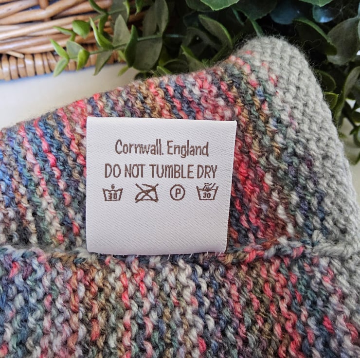 Baby knitwear is designed and hand crafted by Demelza Designs in Cornwall meeting UK baby safety standards, Only branded premuim acylic, acrylic/natural fibre blends or pure natural fibre yarns are used in baby knitwear which conforms to BS984/76 standards.