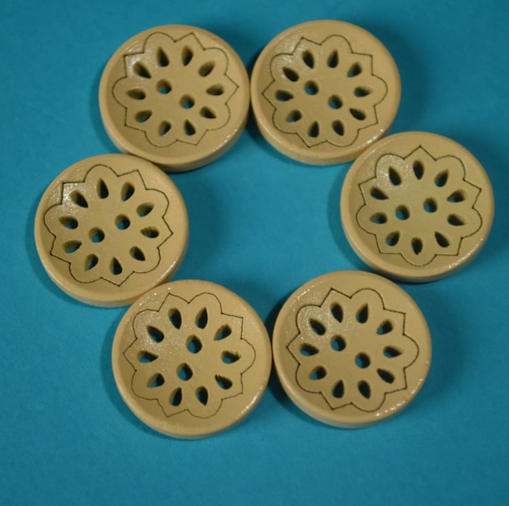 Wooden Pierced Flower Buttons Pale Yellow 6pk Button 18mm (P3)