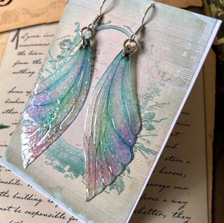 The tiny pieces of glitter are sealed into the wings so you won't be shedding sparkles wherever you go. I have glazed the wings to really make them shine.