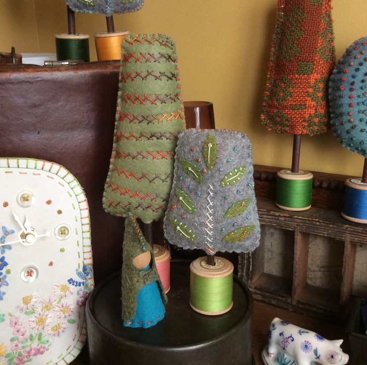 I love trees and Milton Keynes is full full full of them, so inspiring. So designing, stitching and printing as many as I can gives me great delight.