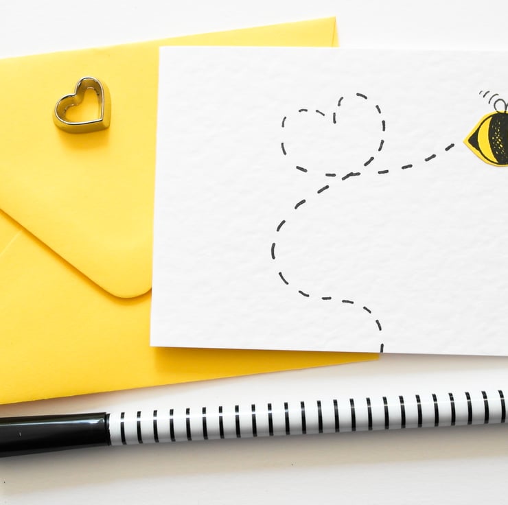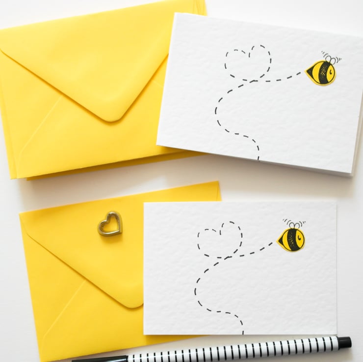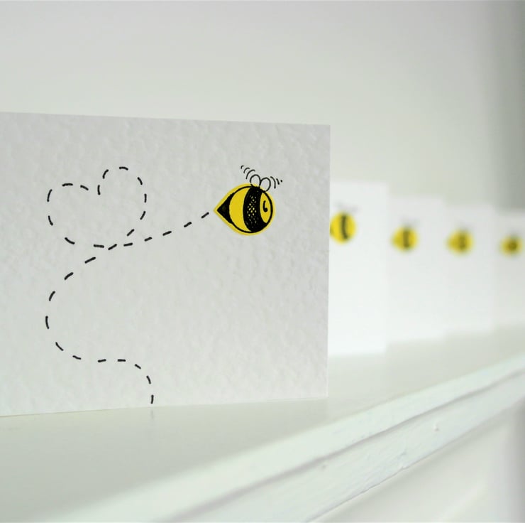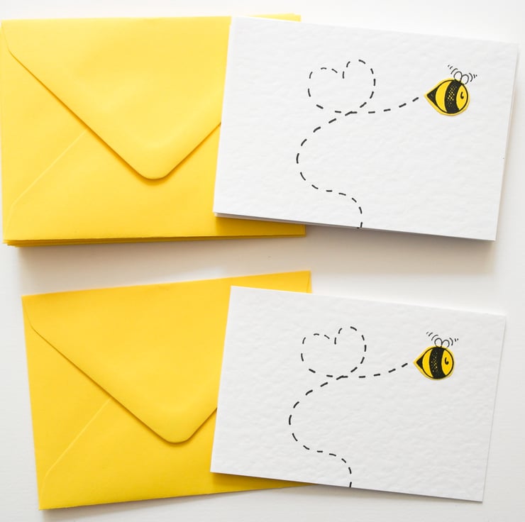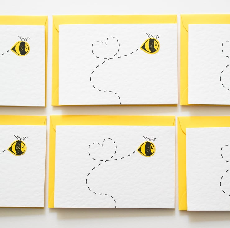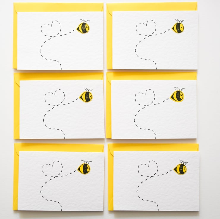 A set of 6 handmade Bee note cards. Ideal cards to send for a birthday, thinking of you, thank you or just because
