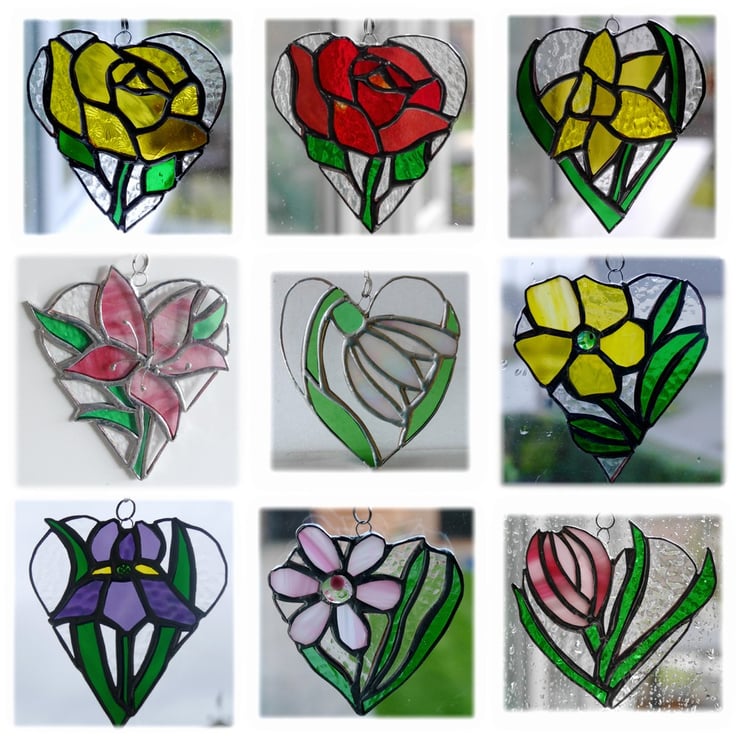 This is a stained glass suncatcher made using the Tiffany copper foil technique.