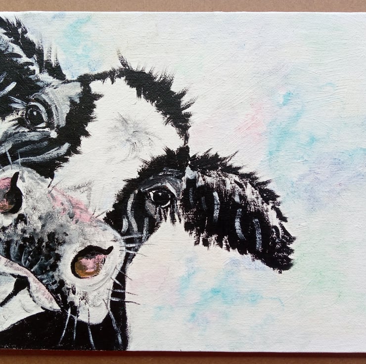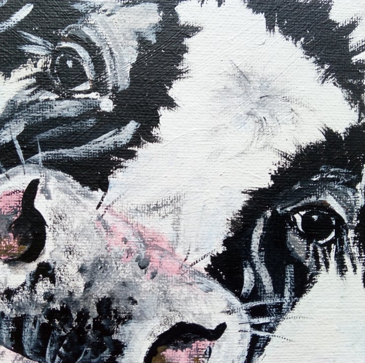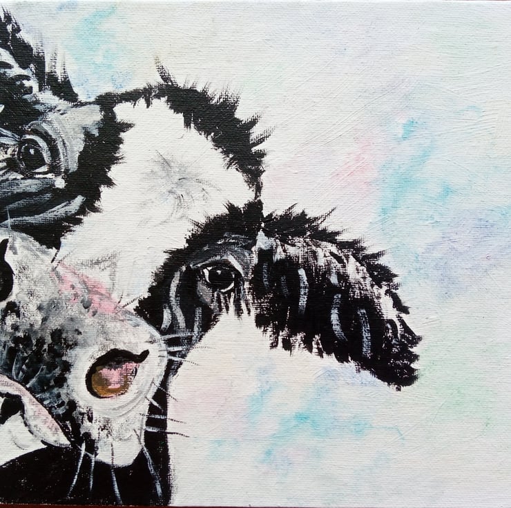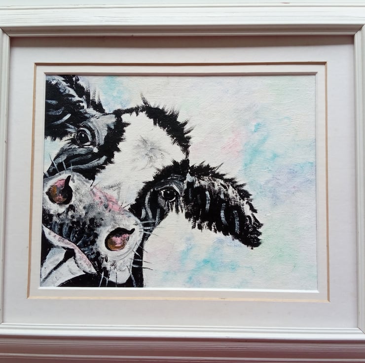 This original acrylic painting uses professional paints. A curious and cute Holstein Frisian Cow.