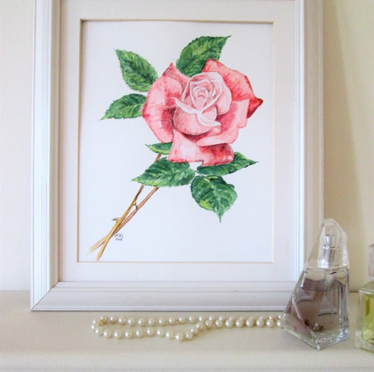 A beautiful pink rose original watercolour painting on quality watercolour paper. Great gift idea for an engagement, wedding or anniversary. Special gift for mother of girl friend.