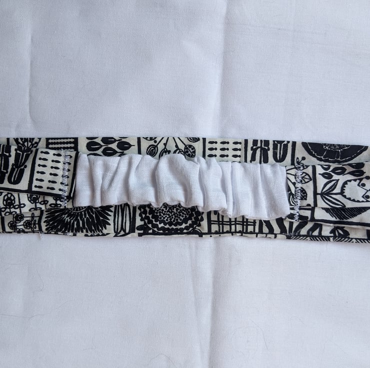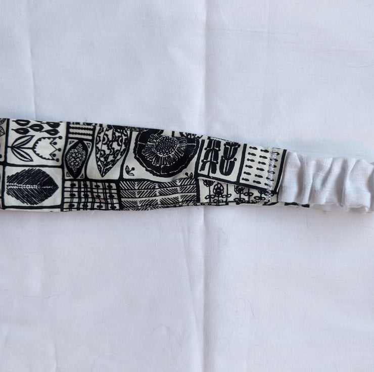 100% cotton hairband in a stunning monochrome pattern, with elastic for a comfortable fit. Measures approximately 21.5 inches around.