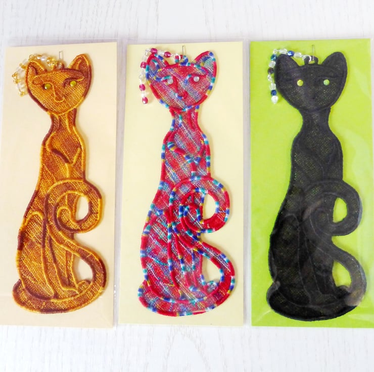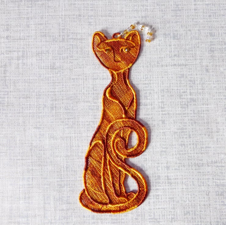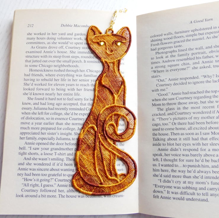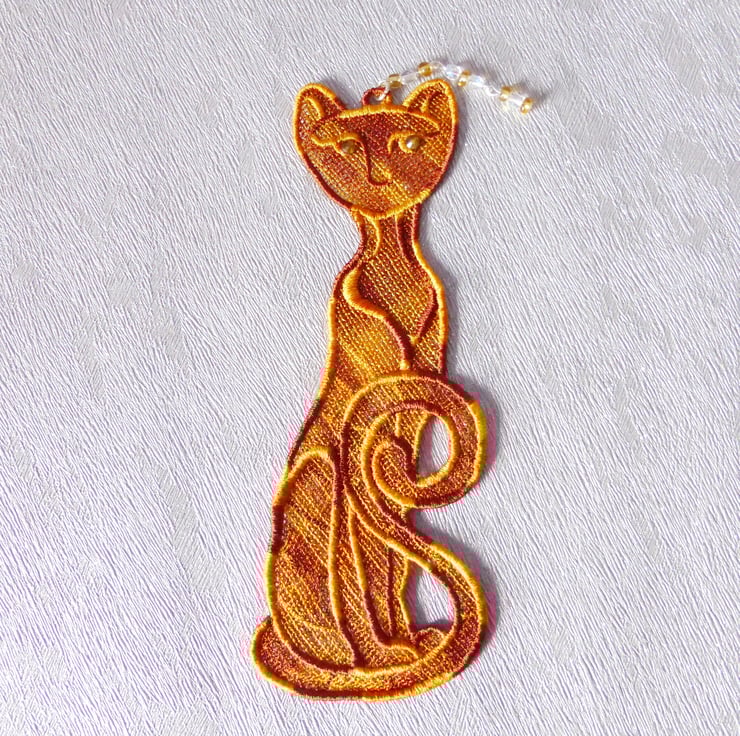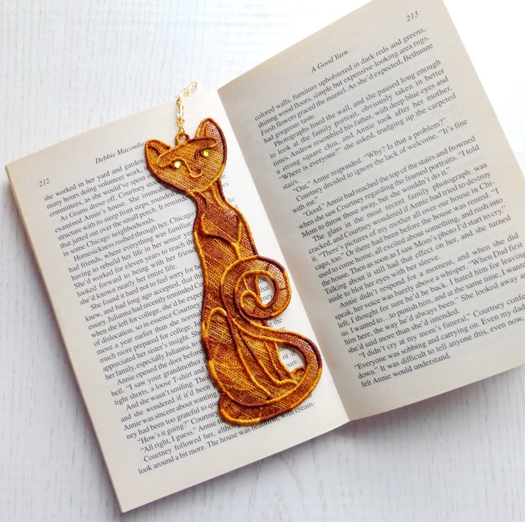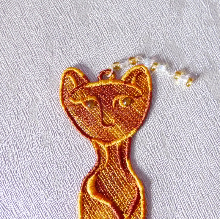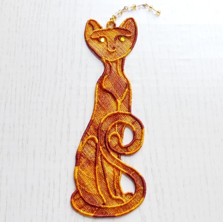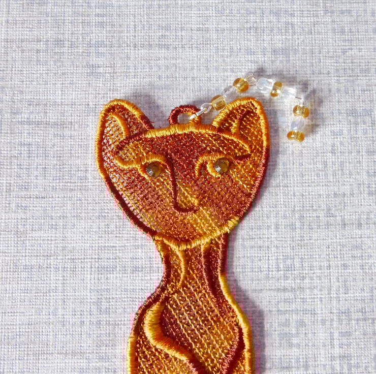 Beautiful embroidered lace 'Ginger' Kitty bookmark