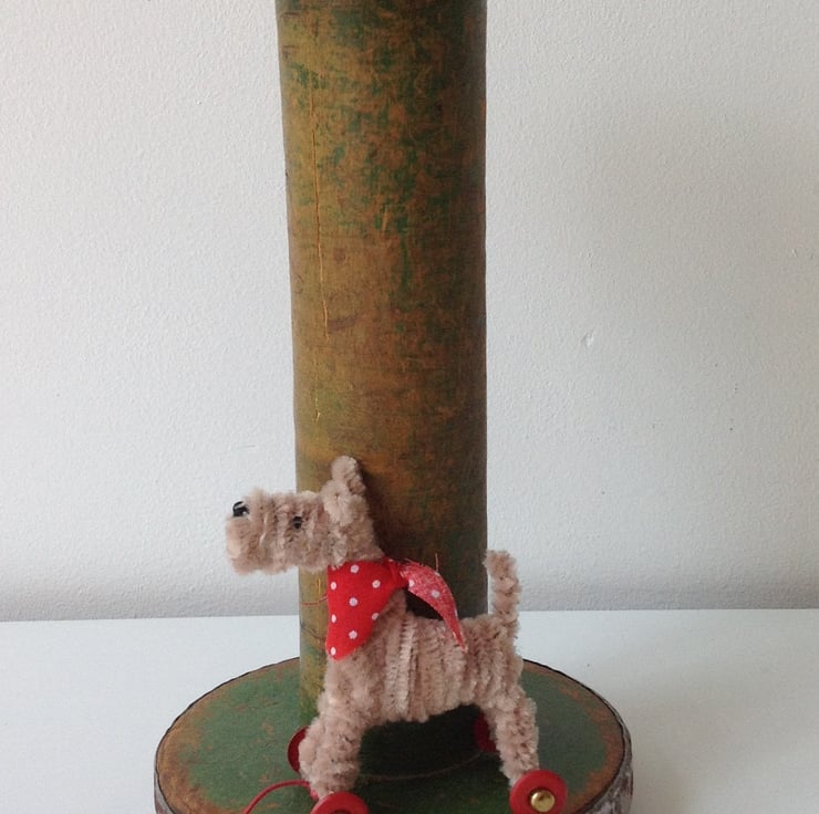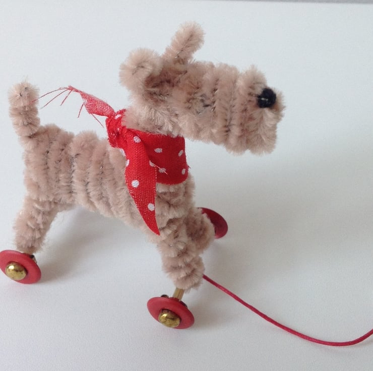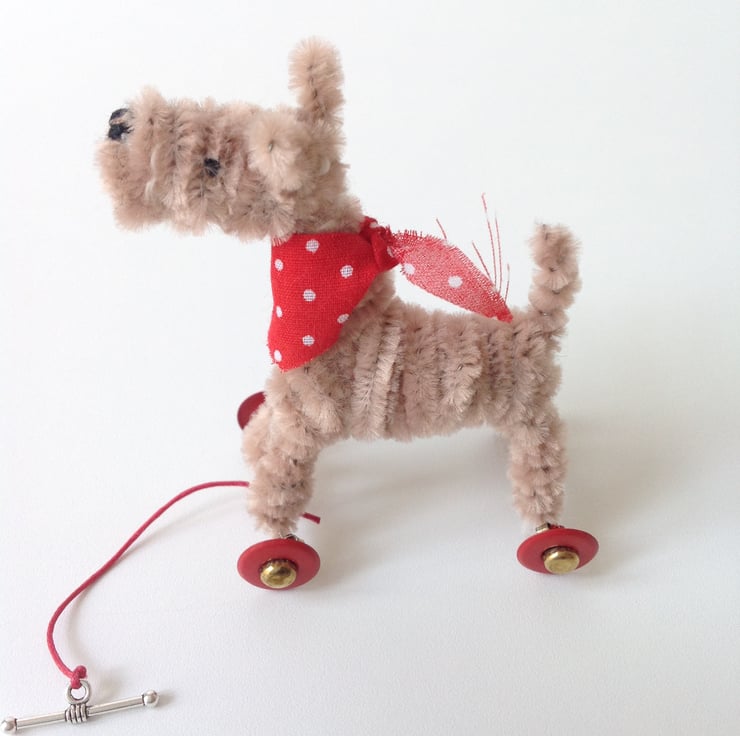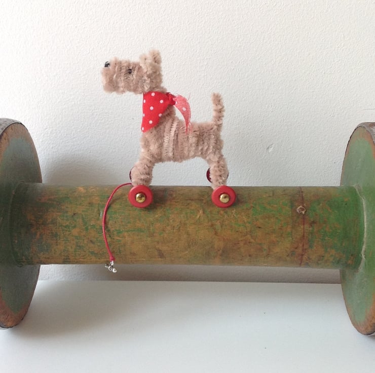 OOAK sculptured miniature terrier on wheels. All my dogs are hand finished with embroidery cotton eyes and noses and wool whiskers. The wheels are for decorative purposes only and these are not intended to be toys but are designed to be little pieces of art for display on a shelf somewhere where they will be admired and loved. Each little fella or miss comes boxed with a little history about their real or imagined life before they arrive at your door. They do come with names but these are, of course, subject to change if you feel so inclined