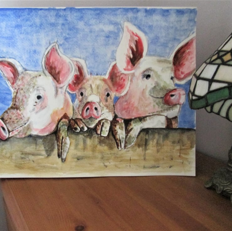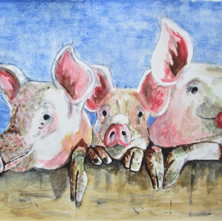 Here are the three little piggies huddled together. Such cute animals to paint.