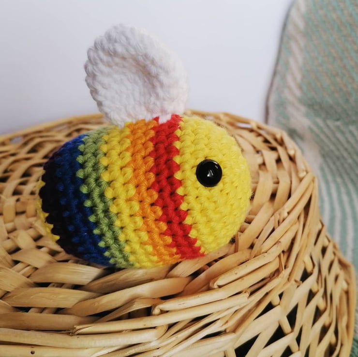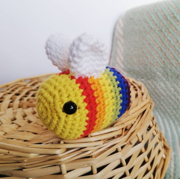 This bright and colourful bee can be seen buzzing around the wildflowers when it's been raining. Brighten someone's day with a colourful handmade gift.