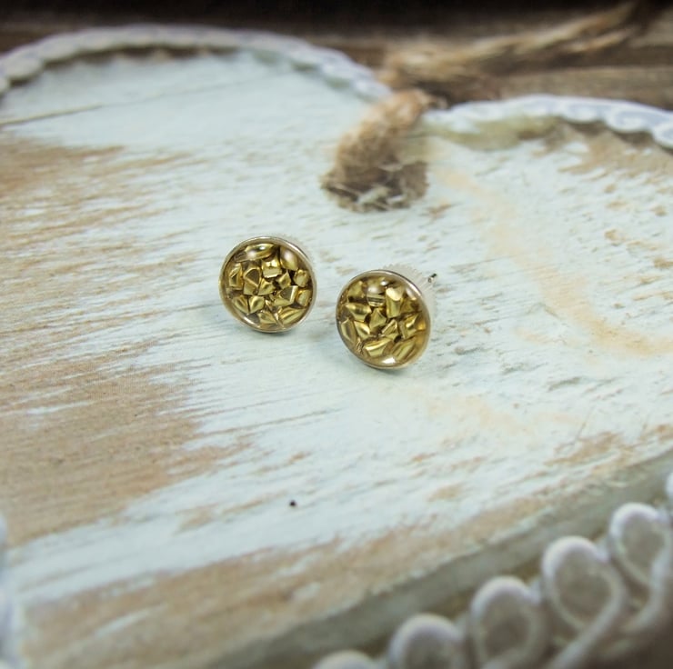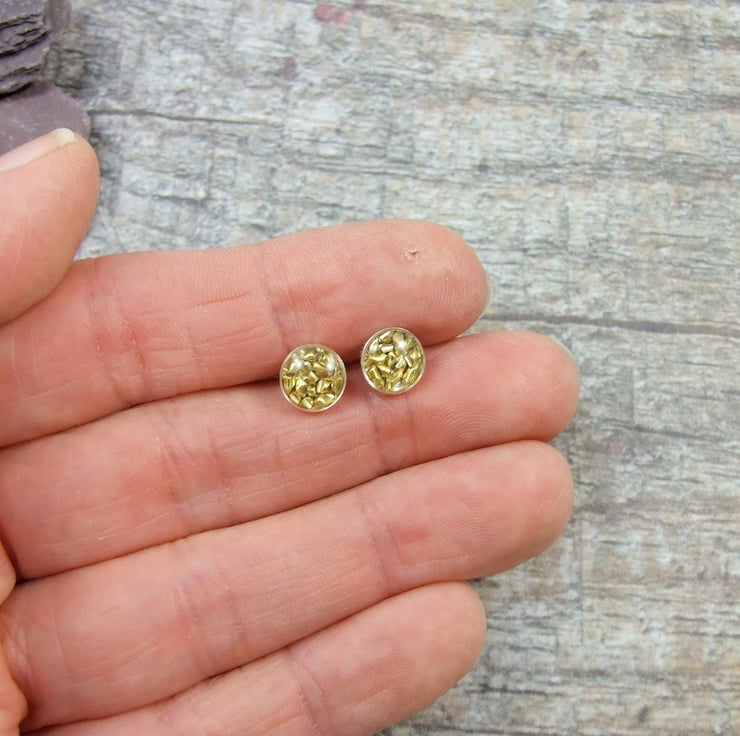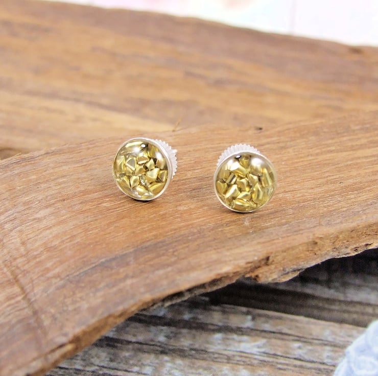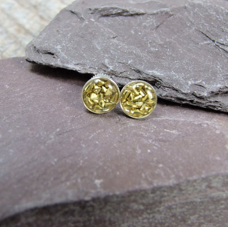 Sterling Silver and Brass Stud Earrings. Shards of brass set in resin for extra sparkle.