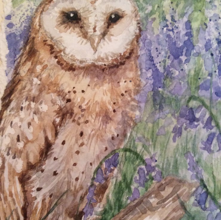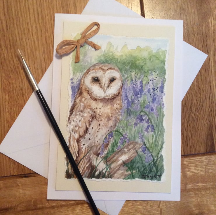I specialise in watercolour painting and hand painted greeting cards. This particular card consists of an original watercolour painting and not a print so the recipient will receive a card that is totally unique. The painting depicts an owl perched on a fence post surrounded by bluebells. I use a range of watercolour techniques such as wet on wet, resist and splattering to create my unique style. The painting has been mounted before being attached to a white card so after use it can easily be framed as an original piece of artwork. The card has been left blank inside for your own personal message and comes with white envelope.