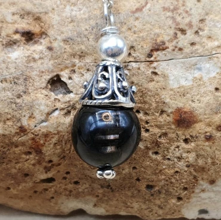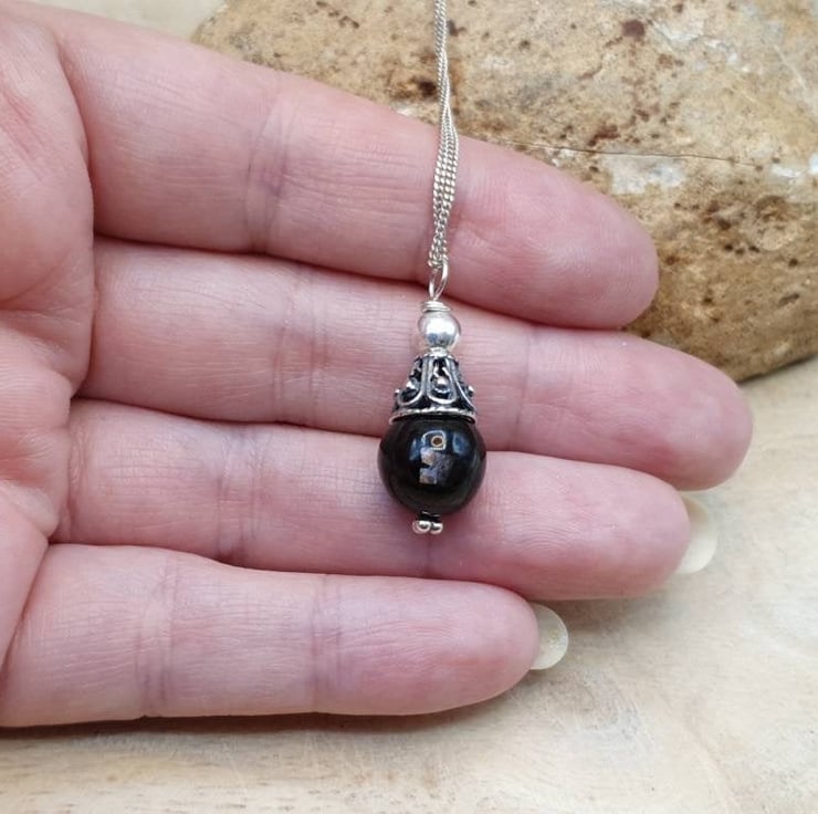 This is a women's Bali silver Hypersthene pendant. Bali Silver beads are handmade beads by the world renown silversmiths of Bali that contain up to 99% silver. Bali Silver is not hallmarked or stamped. Stones will vary from the photos.