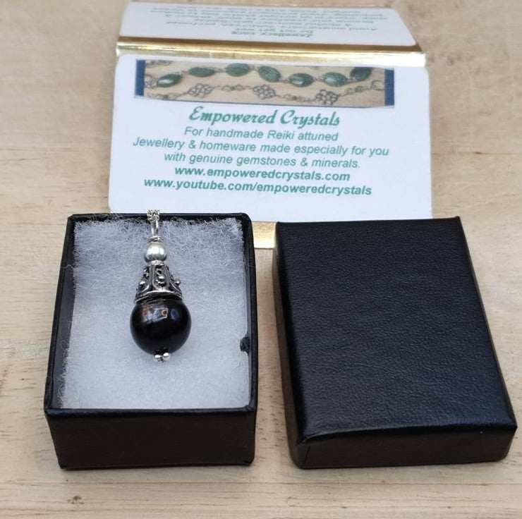 Minimalist Hypersthene cone pendant. Reiki jewellery