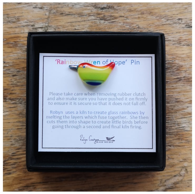 These were born in response to Covid-19. Initially it started with 'Rainbow Wren of Hope' birds to hang in your window and then it expanded into jewellery, including earrings, pendants, brooches and pins. A reminder of hope. Sending much love to you and yours.