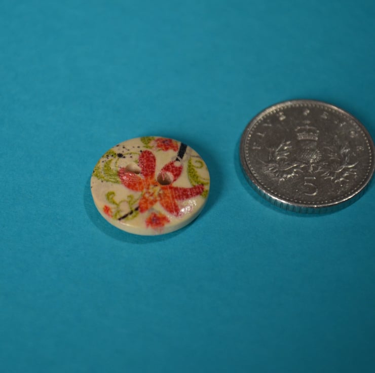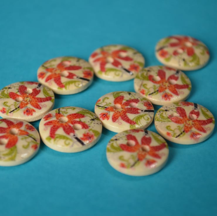 Pretty printed wooden floral buttons.
