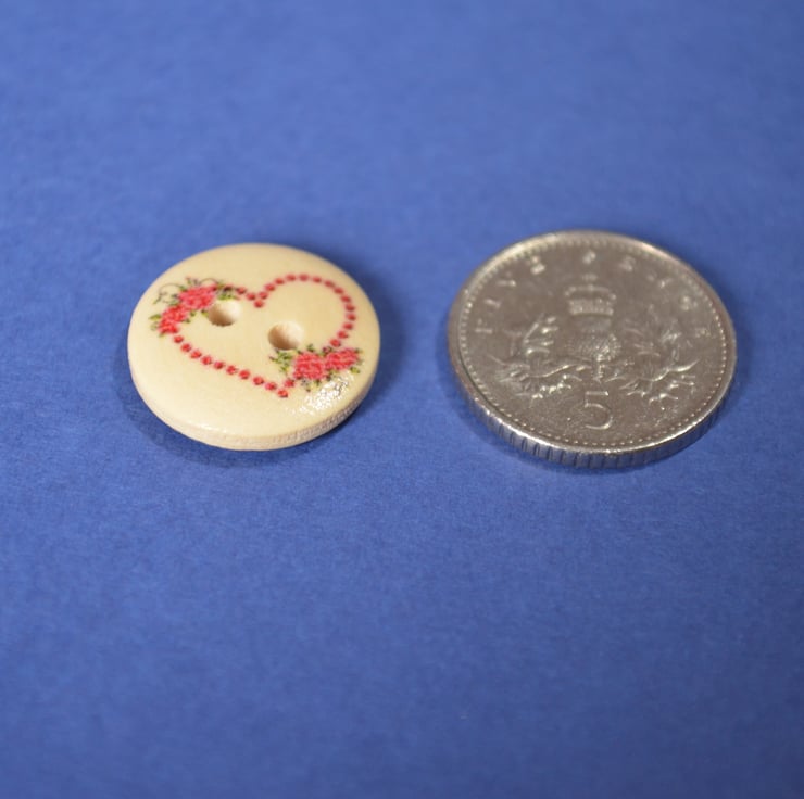 Pretty printed wooden floral heart buttons.