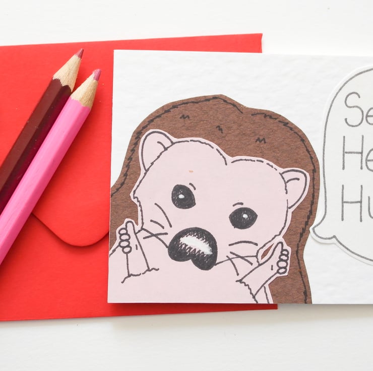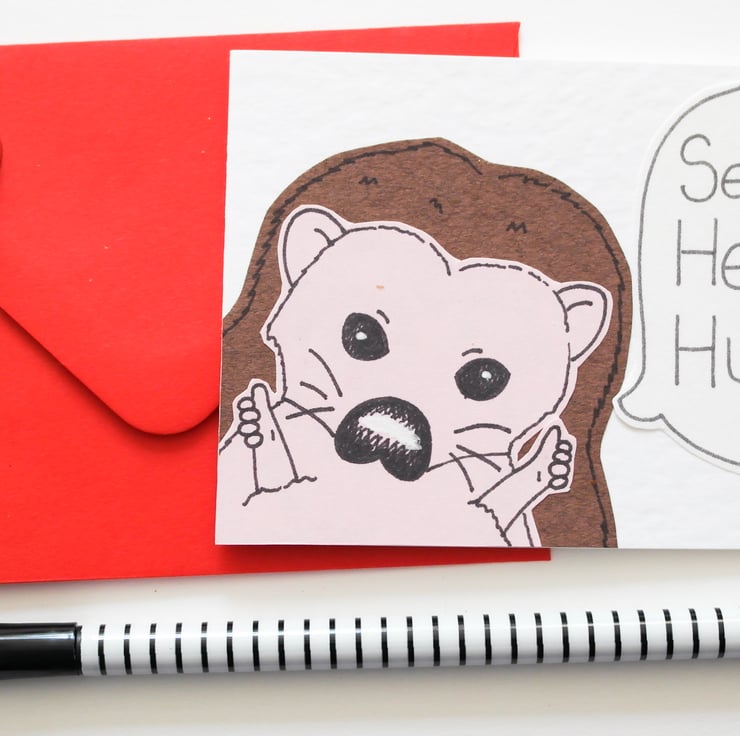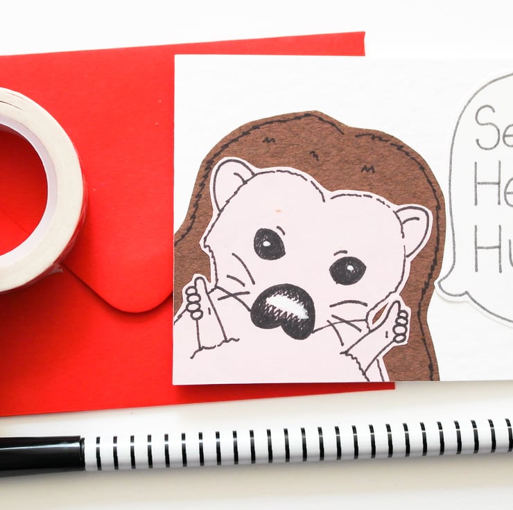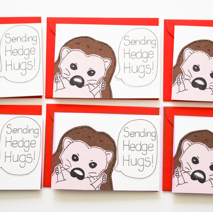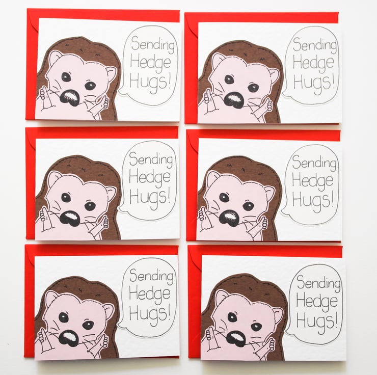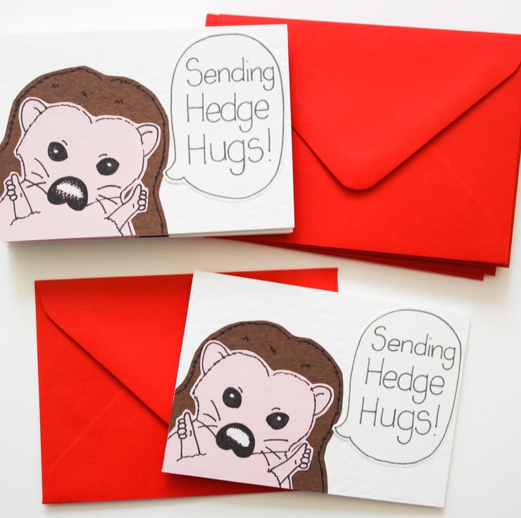 Send someone you love a Hedge Hug. An ideal cute greeting card to let them know you are thinking of them, thank you, missing them or just to send a paper hug!