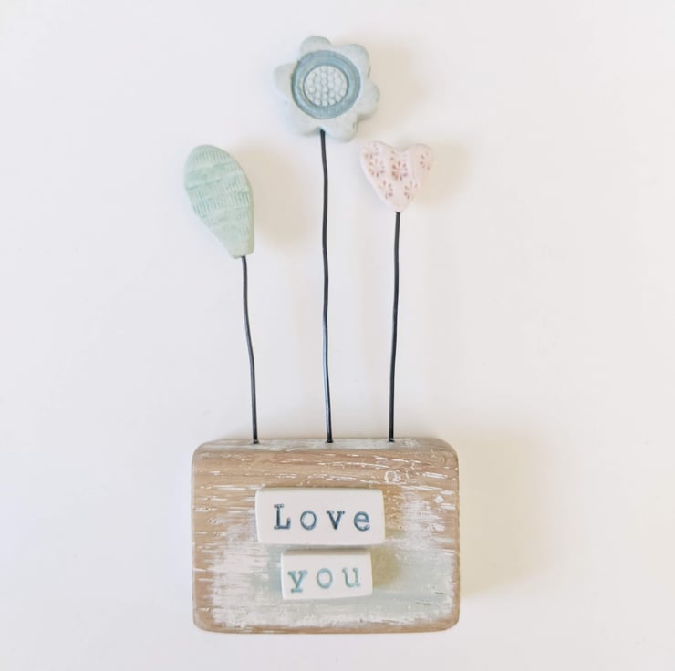 This piece is one of a kind, created from my love of making, exploring and mixing different materials to make a pretty scene that brightens any day.