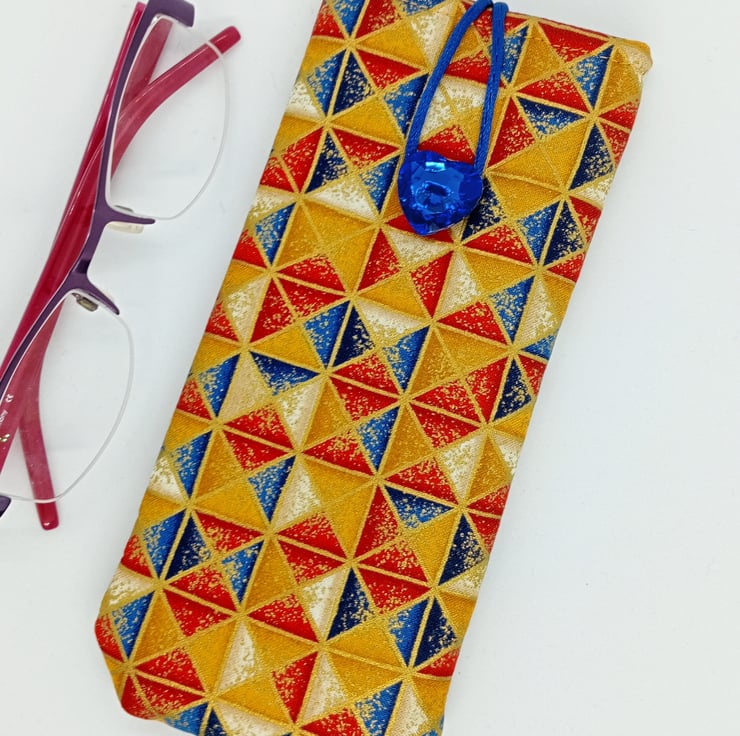 It is wadded to protect your glasses and features a handmade with love label on the back. Lining is orange cotton