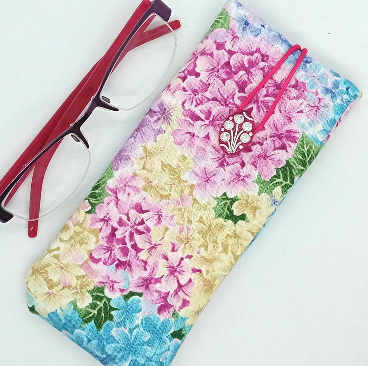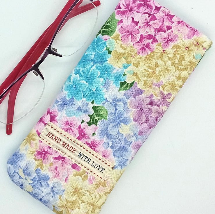Soft quilted Glasses case in cotton measuring 18.5cm x 8cm.