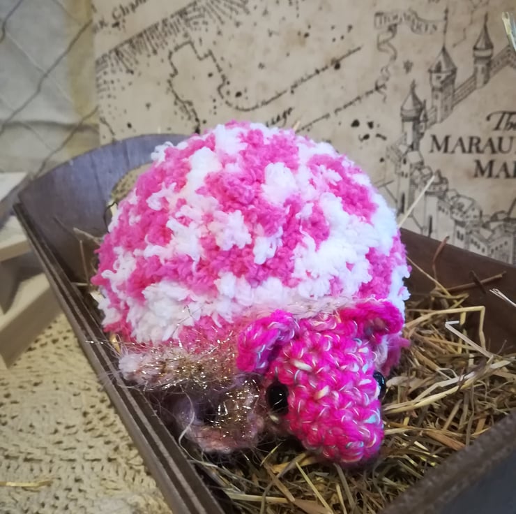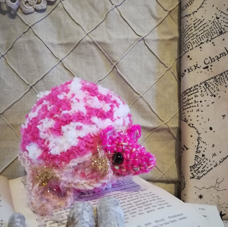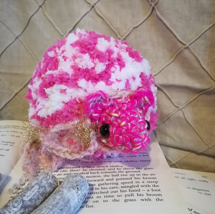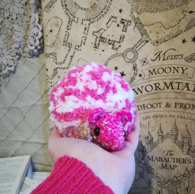 Petunia puff is made from extra special fluffy soft pink and white yarn.